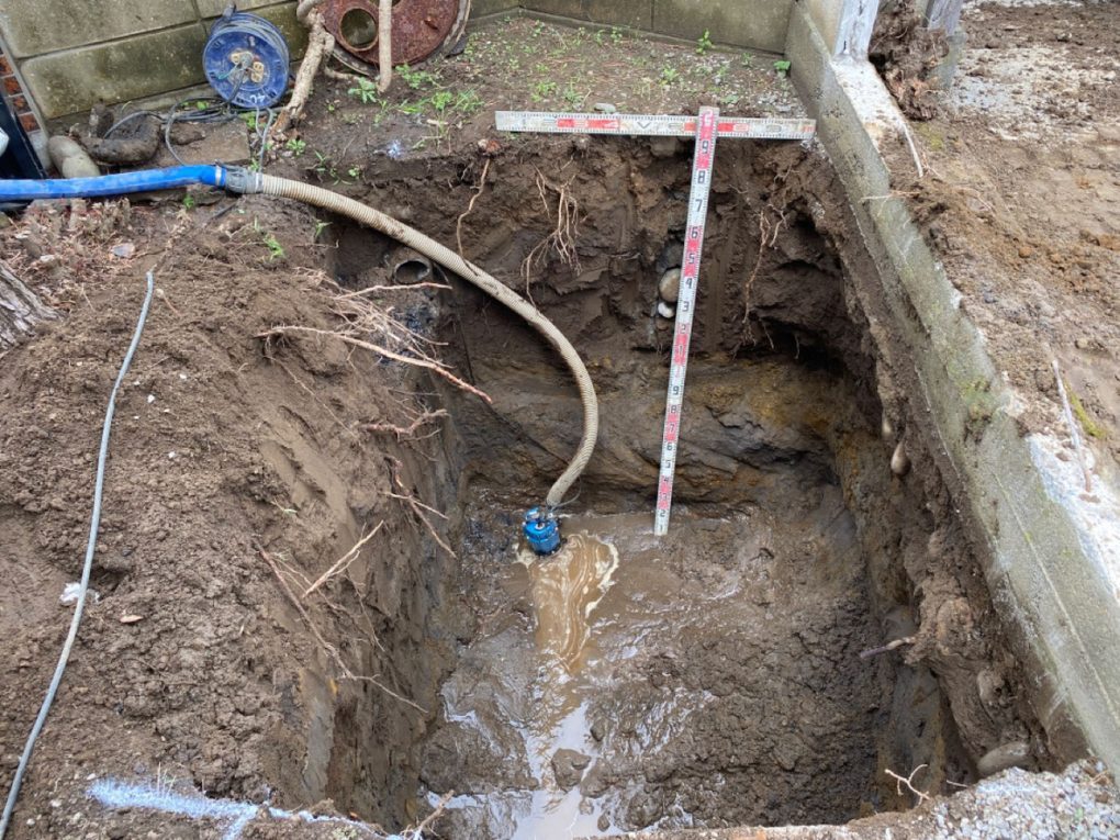 実際に施工を開始し掘削してみると、予想以上に地下水位が高く、湧水が発生していました。水処理をしながらの作業となったため通常よりも慎重な工程が必要でしたが、専門の施工ノウハウを活かして安全に作業を進めました。