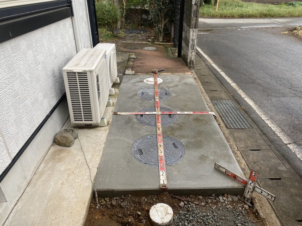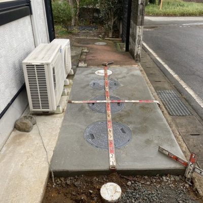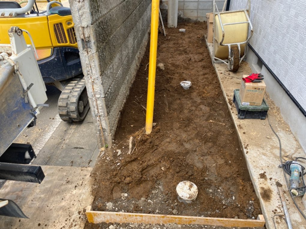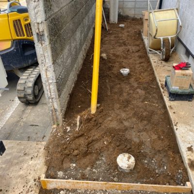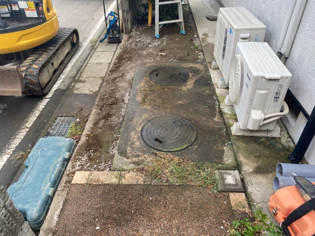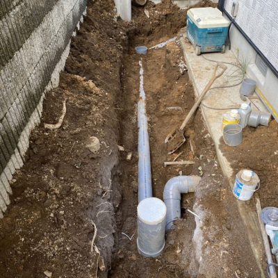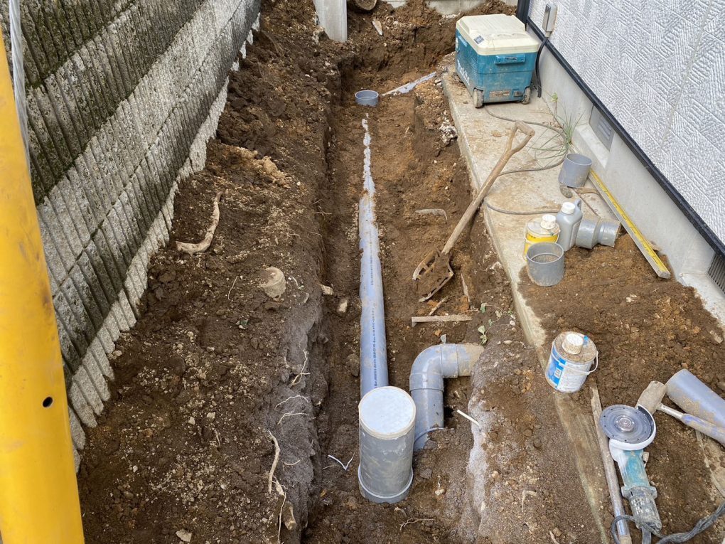 施工にあたっては、敷地内のブロック塀を撤去し、浄化槽を設置するスペースを確保しました。狭いスペースや障害物のある現場でも、事前に計画を立てて作業を進めることで、安全かつ効率的に施工が可能です。