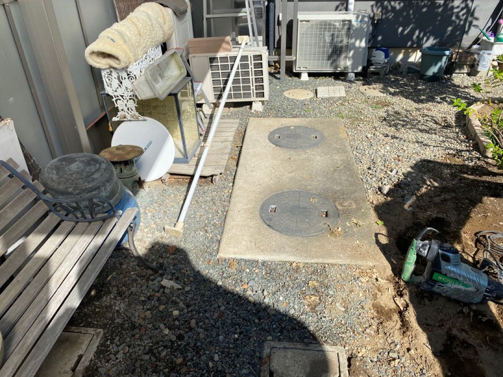 今回ご紹介するのは、伊勢崎市で行った浄化槽設置工事です。施工前の現場を確認すると、既存の排水設備が老朽化しており、新しい浄化槽への交換が必要な状況でした。