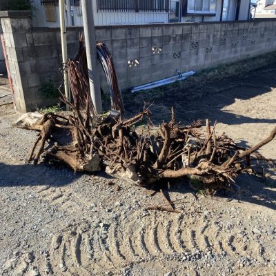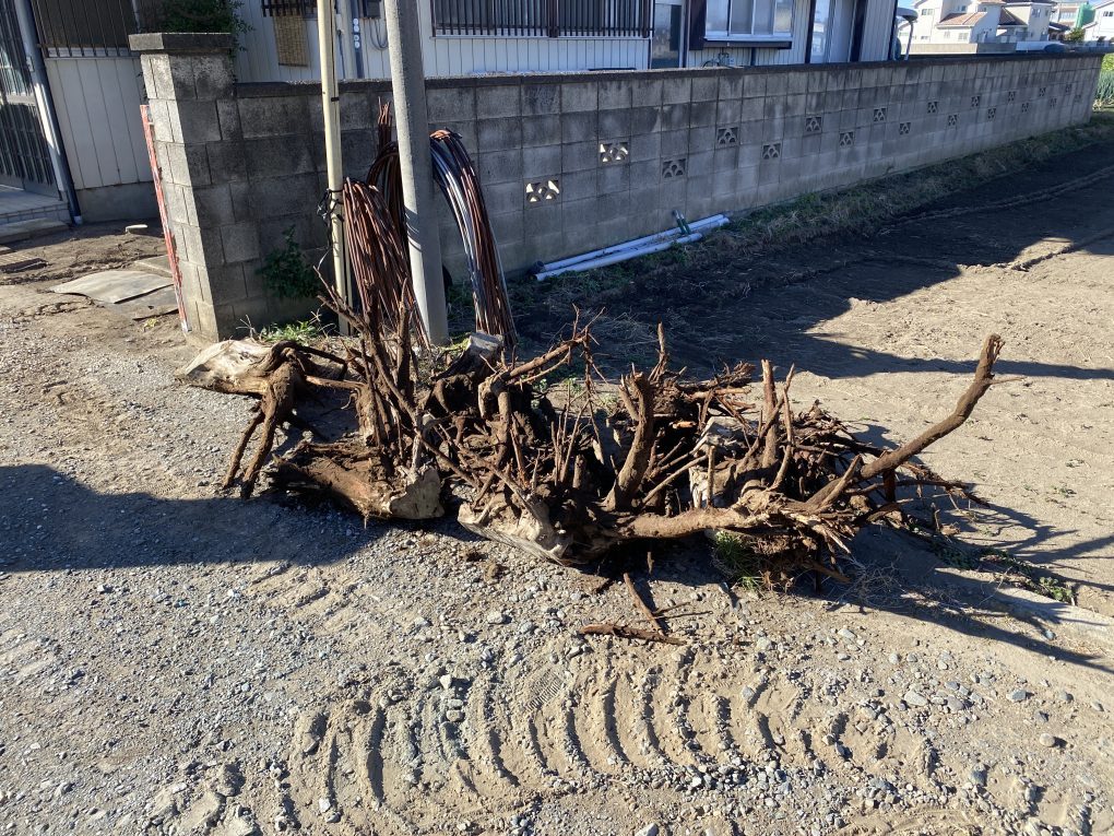 敷地内に残置されていた根は、配管や構造物への影響があるため、周囲の土砂と分別しながら丁寧に撤去。