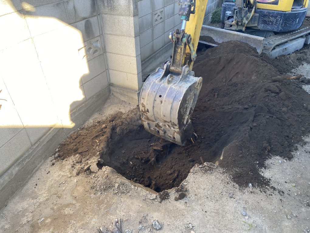伊勢崎市・古い切株を撤去してからの浄化槽転換工事