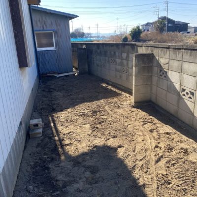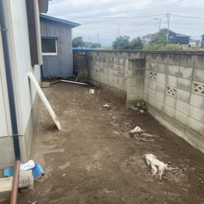 配管の掘削工事のついでに、以前から気になっていた切り株を撤去しました。つまづく危険も無くなって安心です。足りない土も補充して地面が綺麗に平になりました。