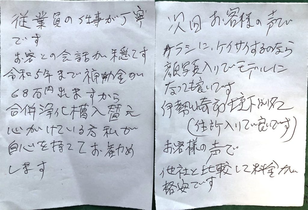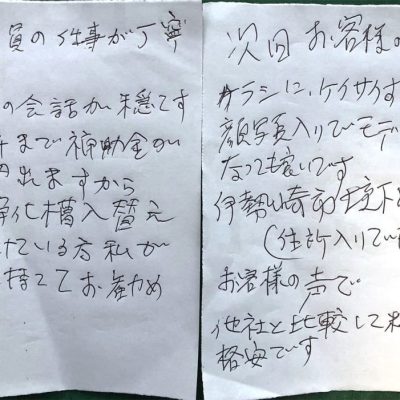 工事後、お客様より心温まるお手紙を頂戴し、ご本人のご了承を得て、こちらのブログでご紹介させていただきます。